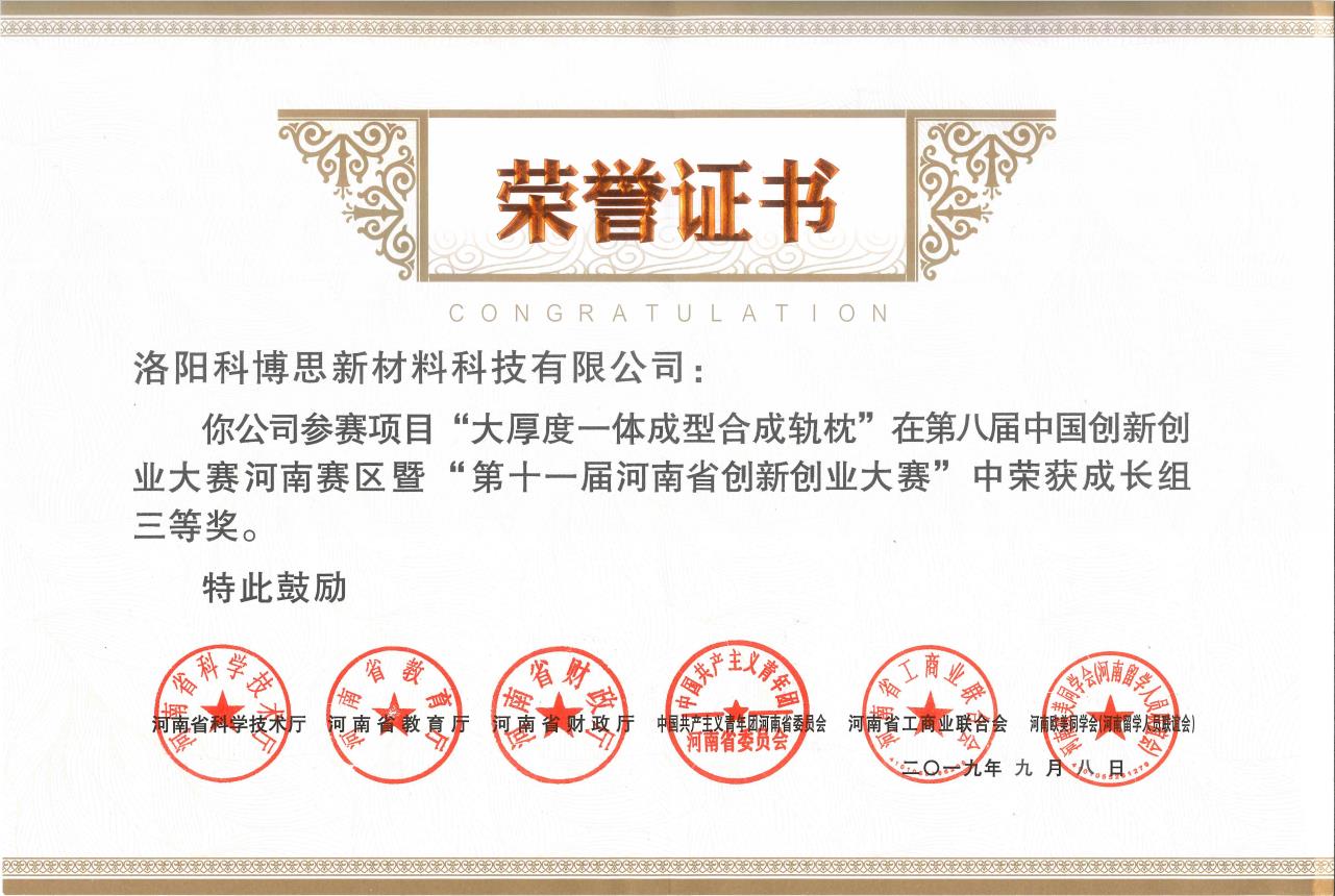 科博思新材榮獲‘第八屆中國創新創業大賽河南賽區’三等獎