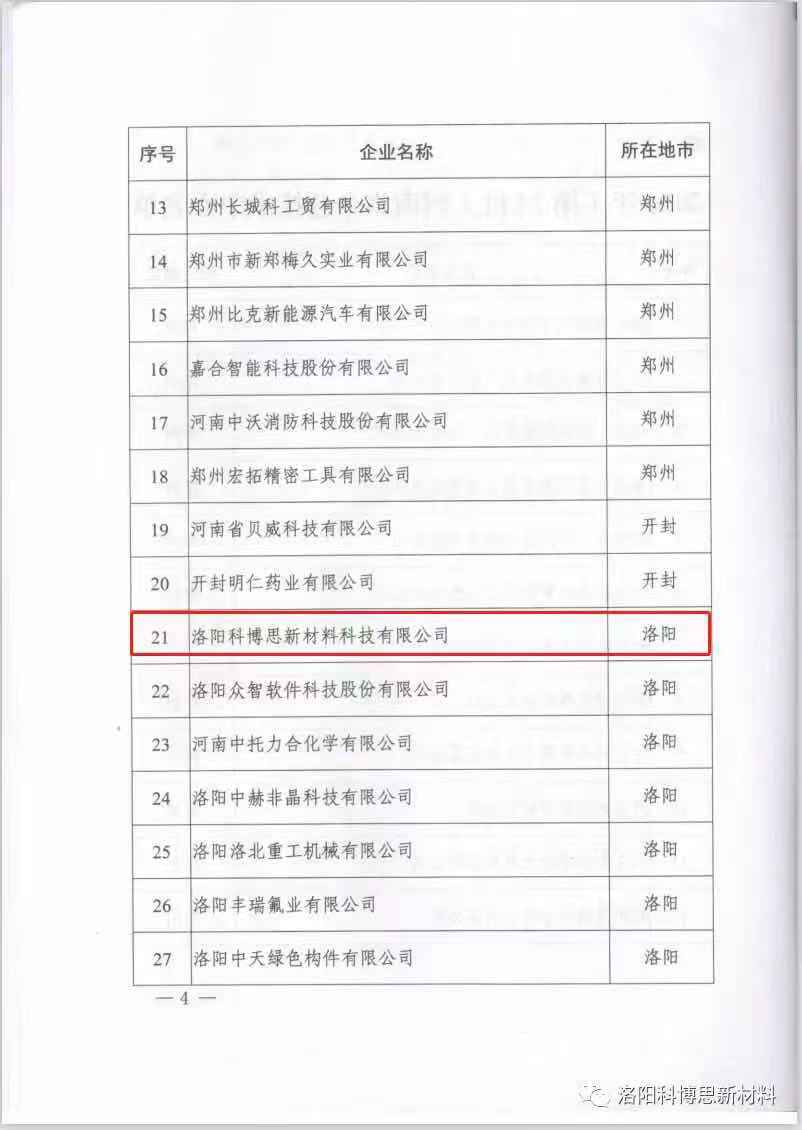 洛陽科博思新材料科技有限公司獲批河南省企業(yè)技術(shù)中心認定
